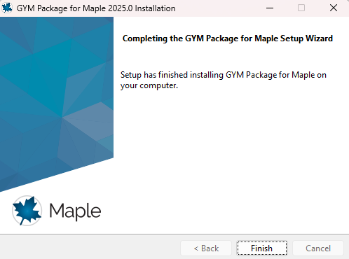 Step 8: Tryk nu på ‘Finish’. Maple gympakke 2025 er nu installeret.