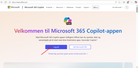Step 1: Åben en webbrowser og indtast hjemmesiden www.office.com og tryk på 'log på'.