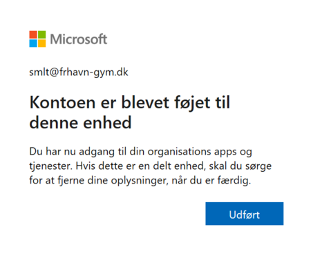 Step 11: Du har nu installeret Office 365 apps på din PC og er logget på din Office skolekonto.