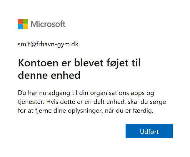 Step 9: Log ind med din Office skolekonto til Frederikshavns Gymnasium & HF.