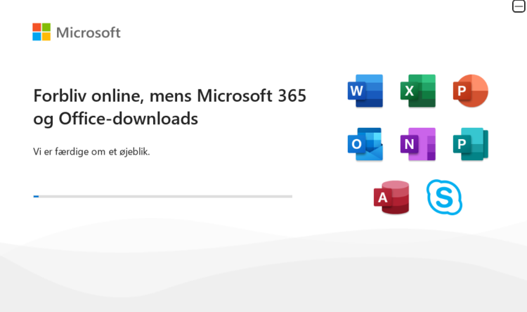 Step 7: Vent i mens Office 365 bliver installere og gå til step 8 når installation er færdig.