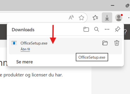 Step 6: Når downloaden er OfficeSetup.exe er færdig åbner du filen.