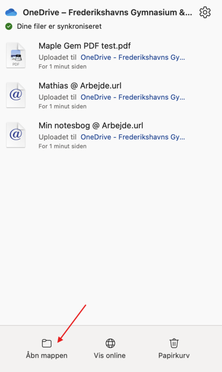 Step 4: Åben Onedrive og Tryk på 'Åben mappen'.