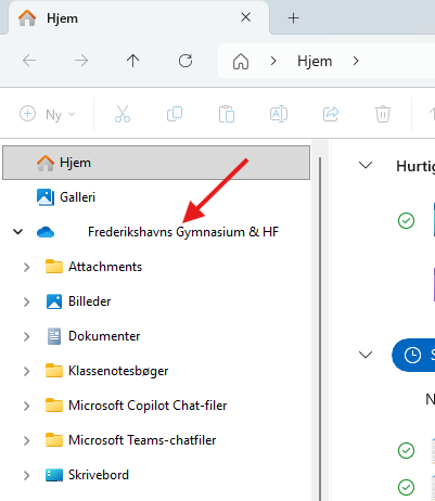 Step 5: Du har nu åbnet stifinder. I dine venstre side finder du nu OneDrive kontoen for Frederikshavns Gymnaisum & HF.