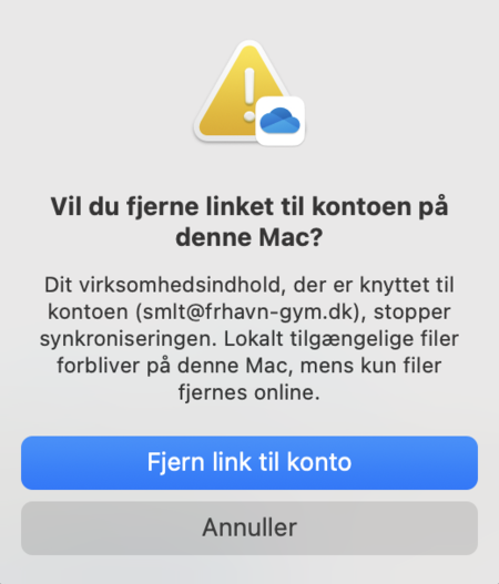 Er det en tidligere skolekonto du skal have fjernet, skal du gemme filerne på en anden OneDrive konto inden du fjerner tilknytningen til kontoen.
