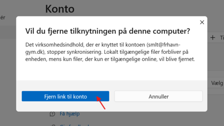 Er det en tidligere skolekonto du skal have fjernet, skal du gemme filerne på en anden OneDrive konto inden du fjerner tilknytningen til kontoen.