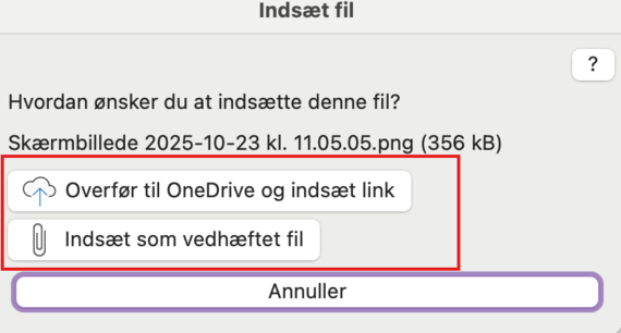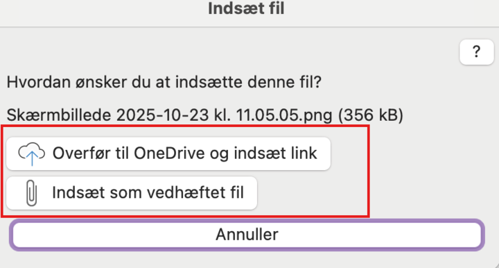 Step 3: Vælg en af de to muligheder for at importerer filen til OneNote