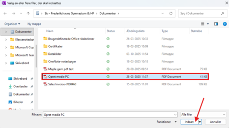 Step 2: Find nu den fil du skal bruge, marker den og tryk derefter 'Indsæt'.