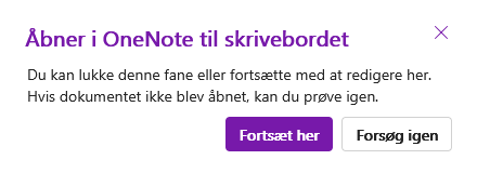 Hvis Klassenotesbogen ikke åbner i skrivesbords appen, tryk 'Forsøg igen'.