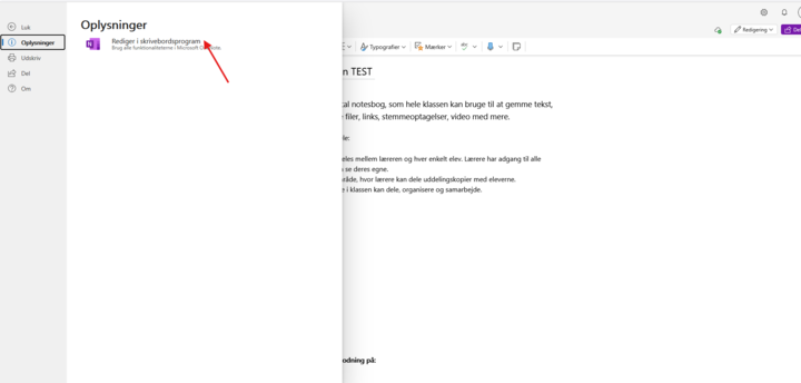 Step 4: Vælg 'Oplysninger' og tryk på 'Rediger i Skrivebordsprogram'.