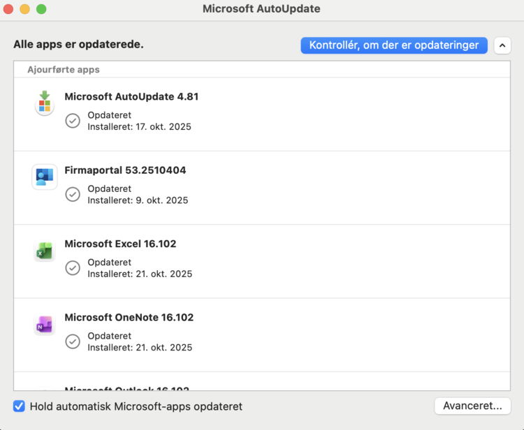 Step 3: Her kan du hvornår Apps'ene sidst er opdateret for Office365.