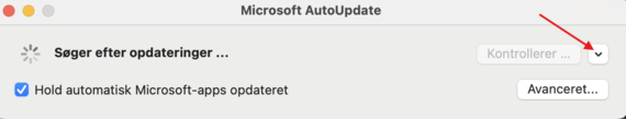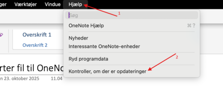 Step 2: Onenote søger nu efter opdateringer til Office365. Tryk på den lille pil som peger ned ad.