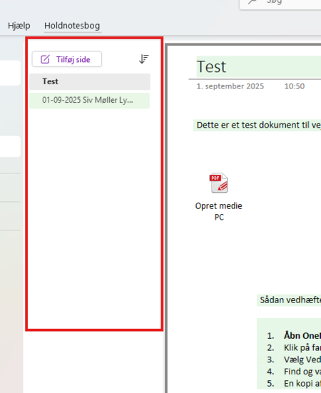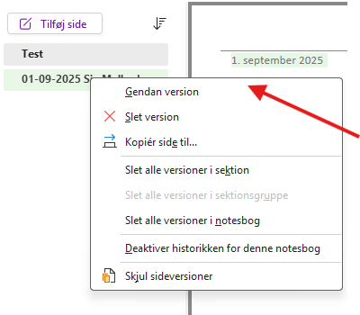 Step 2: Til venstre for dokumentet er der en liste med tidligere verisioner af dit OneNote dokument.