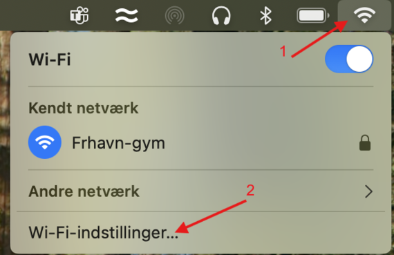 Step 1: Tryk på Wi-Fi ikonet (1) og tryk derefter på 'Wi-Fi-indstillinger' (2)
